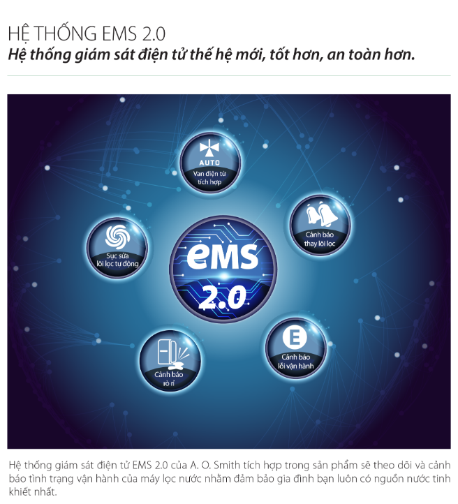 EMS 2.0: Hệ thống giám sát điện tử thế hệ mới theo dõi và cảnh báo tình trạng vận hành của máy lọc nước.